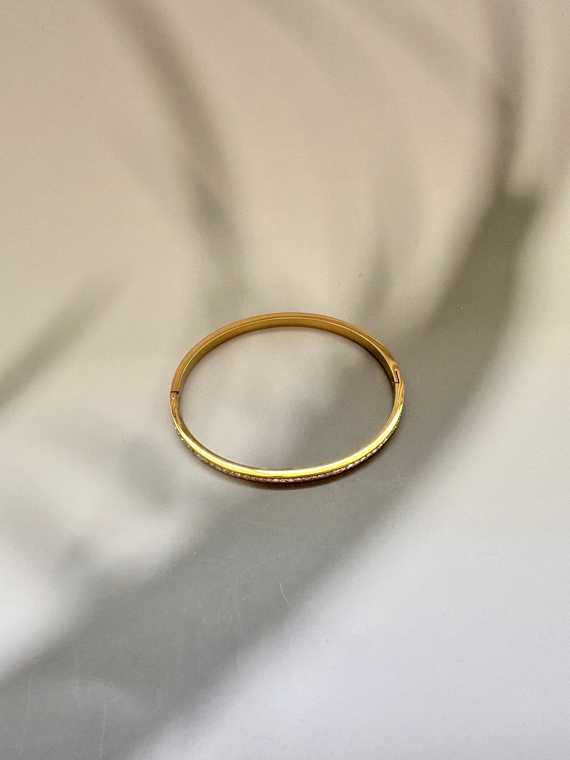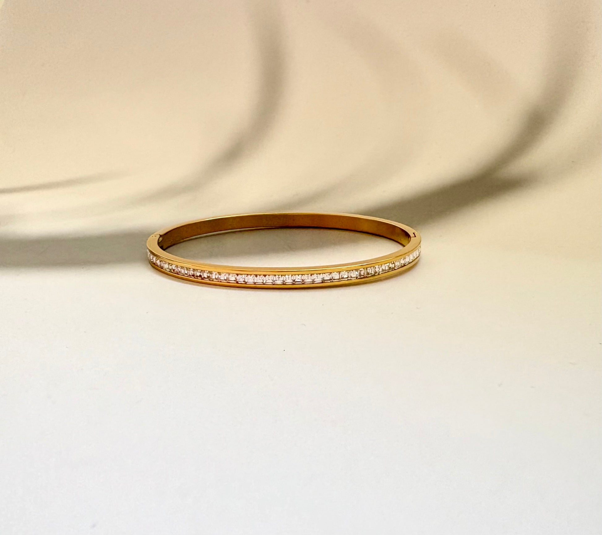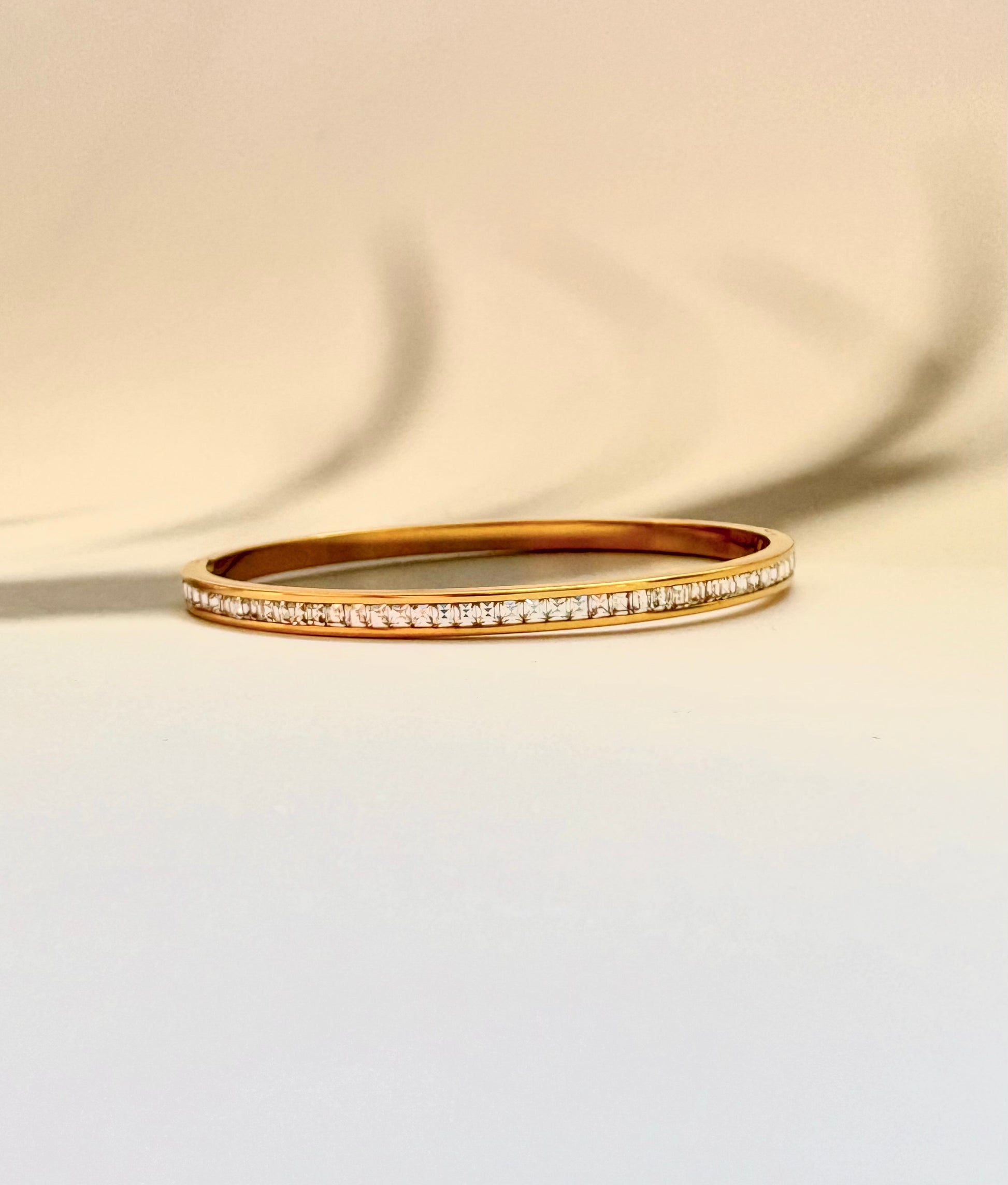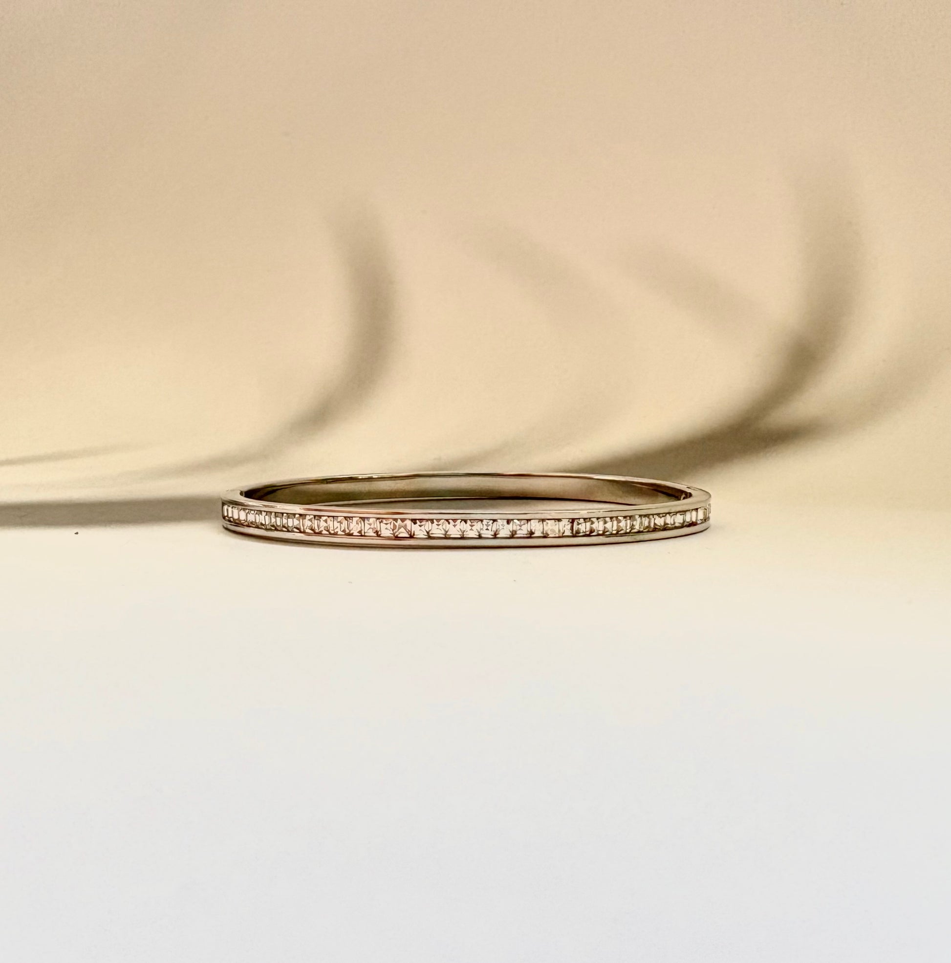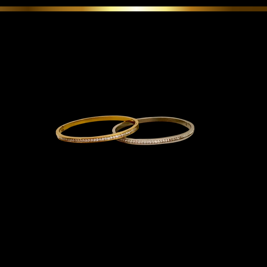Hermosos brazaletes en metal con zirconias blancas elaborados en acero inoxidable.