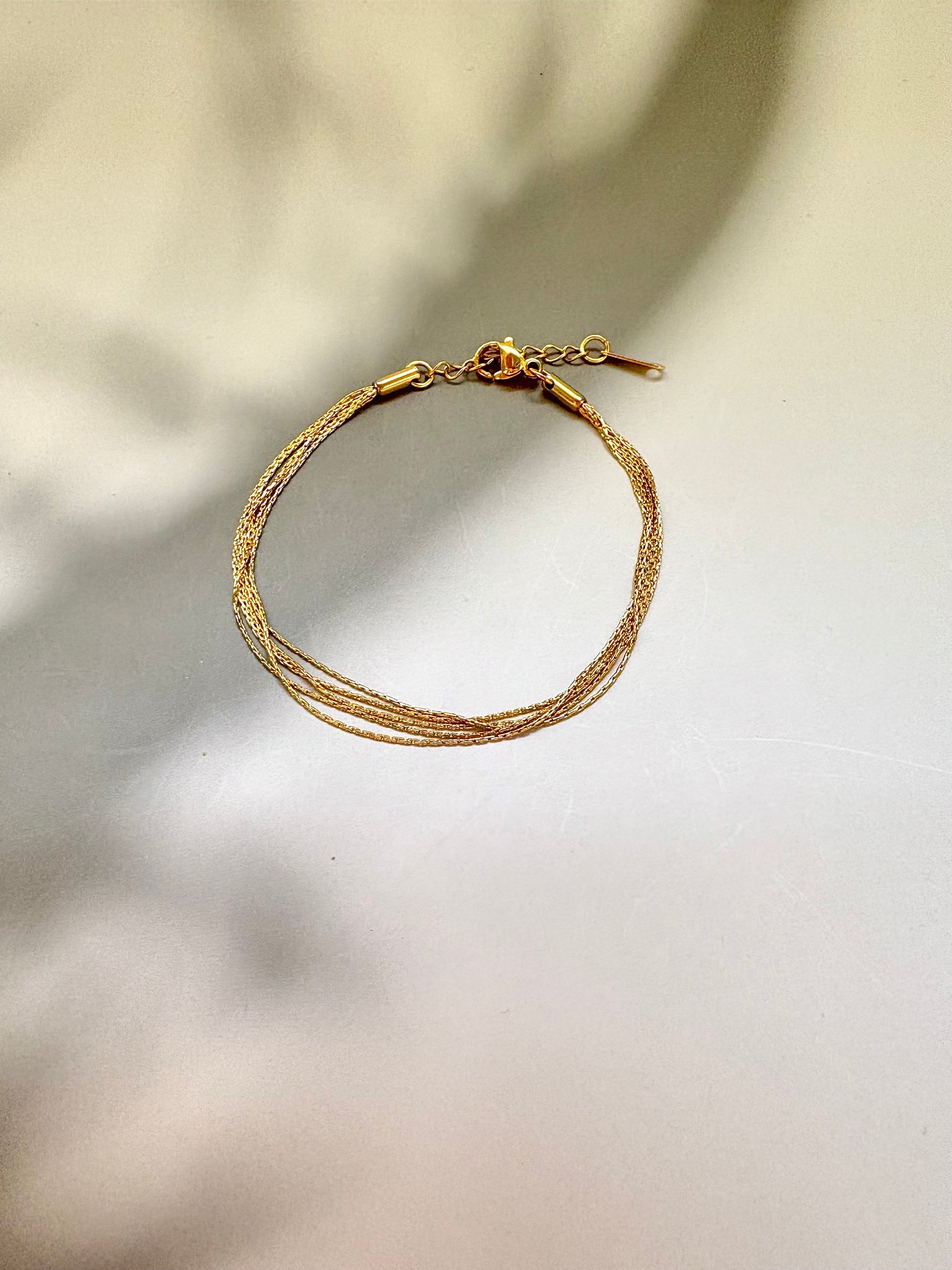 Bella pulsera en cabellitos de oro, elaborada en acero inoxidable.